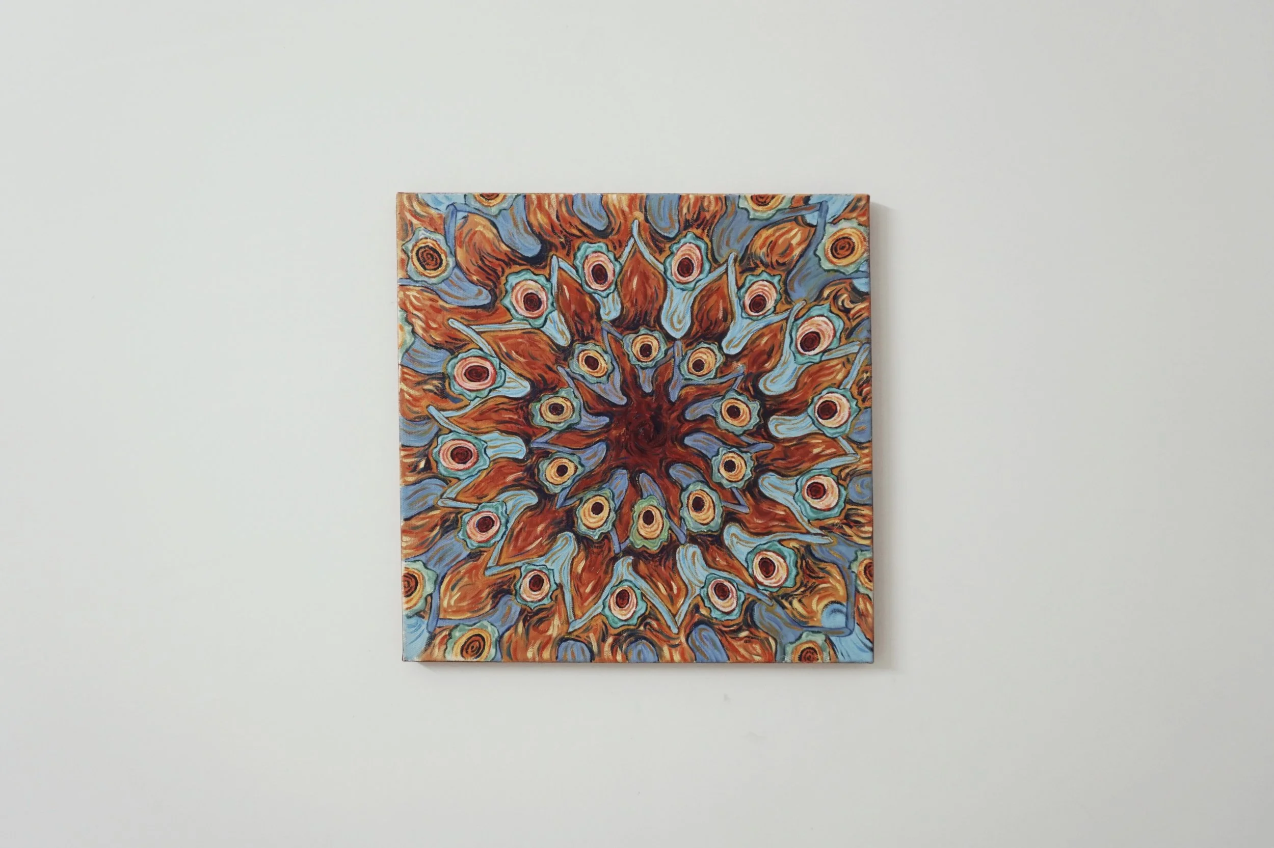 It is like looking down from the perspective of God to understand the actions and cultrue of sunflower groups. This painting focus on the meaning and value of the existence of their herd behavior. When people are standing at the centre and overlooking the followers, whether they can understand the "light source" and the activity state of sunflowers similar to religious ceremony more deeply, and explore the understanding and reaction of symbols imprinted in people's memory.